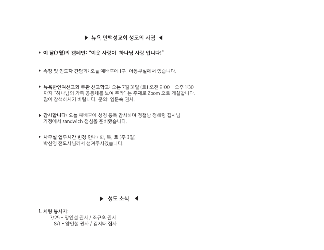 [교회소식] 2021년 7월 25일 뉴욕만백성교회 성도의 사귐