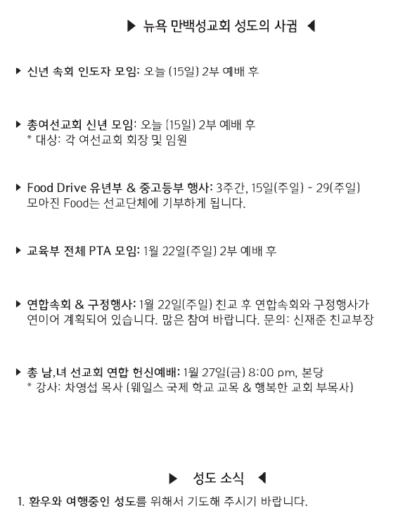 [교회소식] 2023년 1월 15일 뉴욕 만백성교회 성도의 사귐
