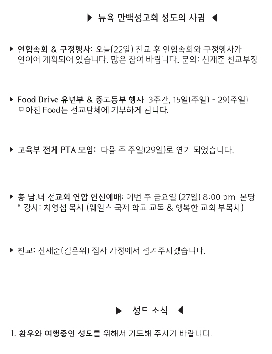 [교회소식] 2023년 1월 22일 뉴욕 만백성교회 성도의 사귐