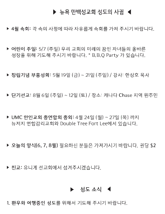 [교회소식] 2023년 4월 23일 뉴욕 만백성교회 성도의 사귐