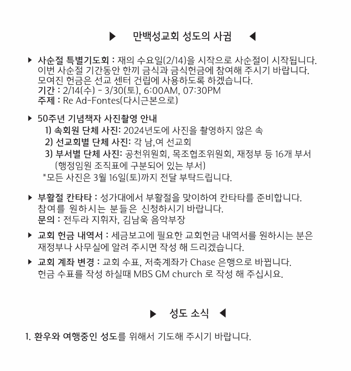[교회소식] 2024년 2월 25일 뉴욕 만백성교회 성도의 사귐