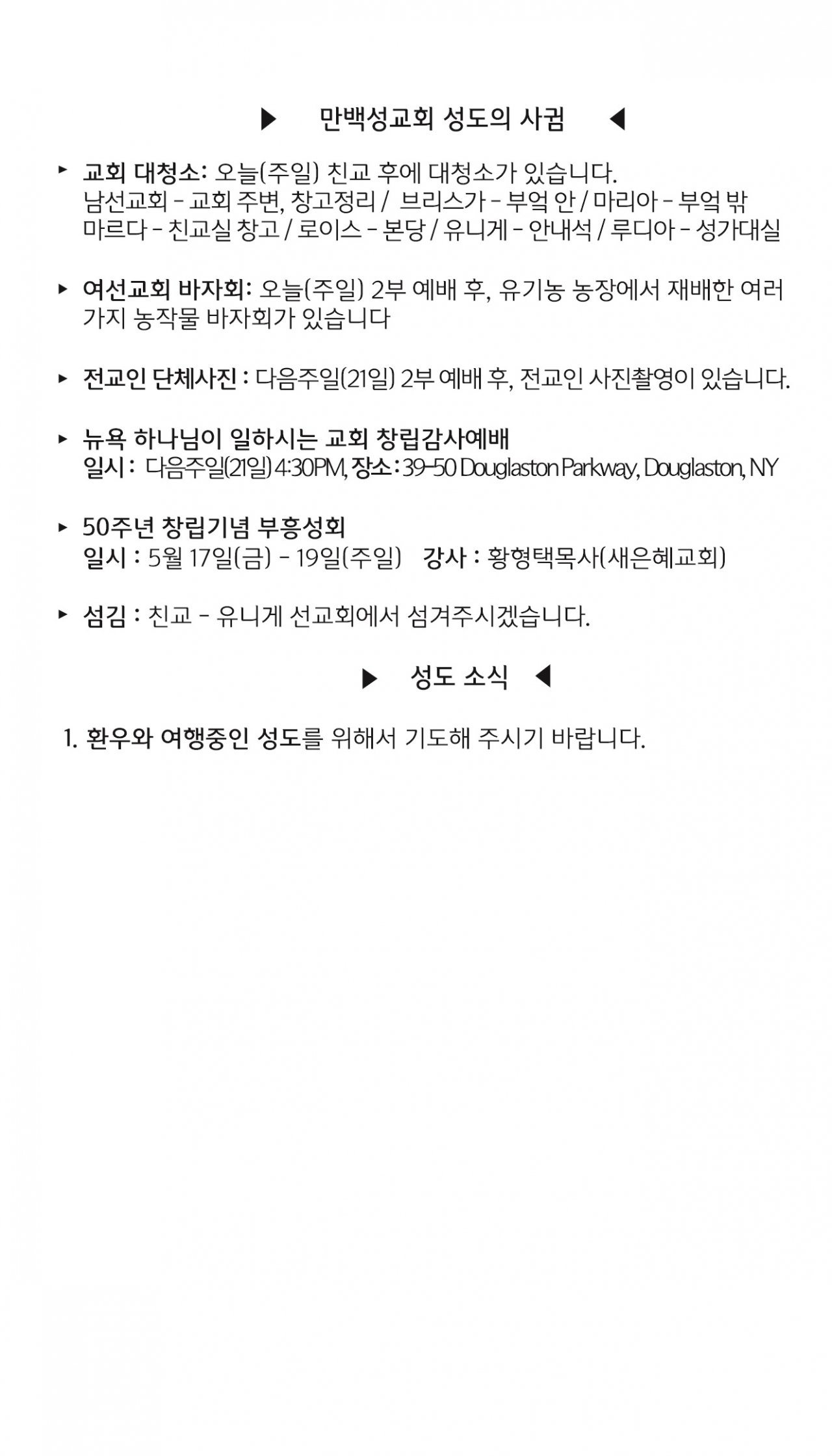 [교회소식] 2024년 4월 14일 뉴욕 만백성교회 성도의 사귐