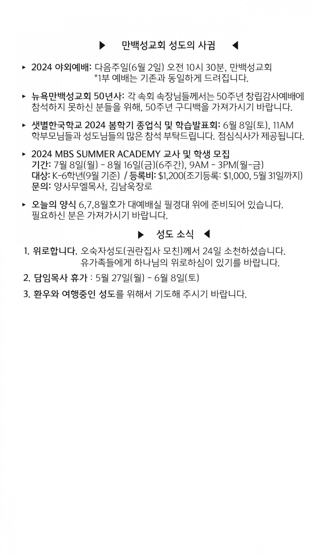 [교회소식] 2024년 5월 26일 뉴욕 만백성교회 성도의 사귐