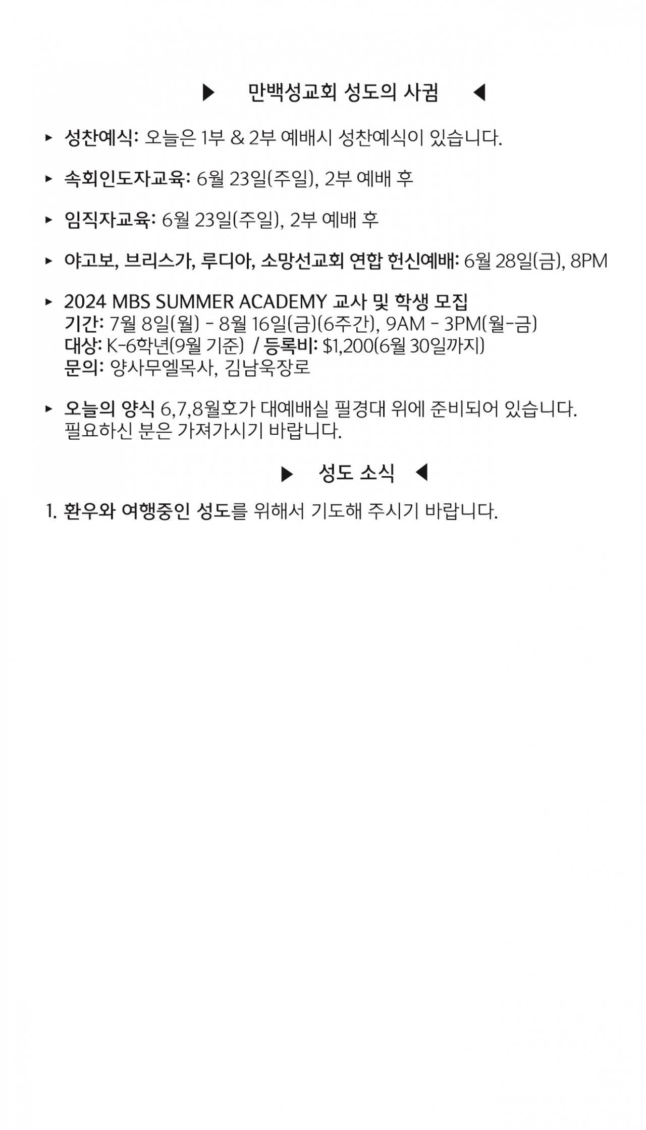 [교회소식] 2024년 6월 9일 뉴욕 만백성교회 성도의 사귐