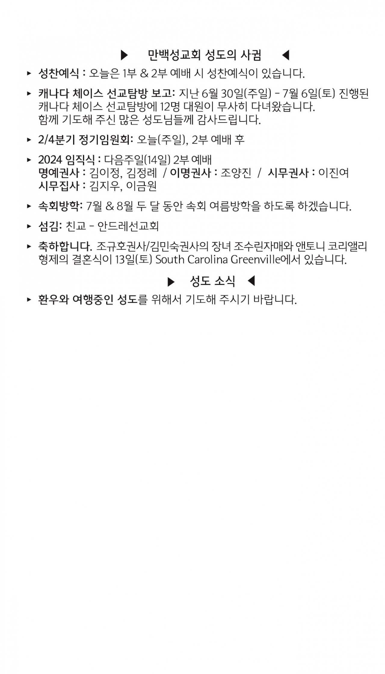 [교회소식] 2024년 7월 7일 뉴욕 만백성교회 성도의 사귐