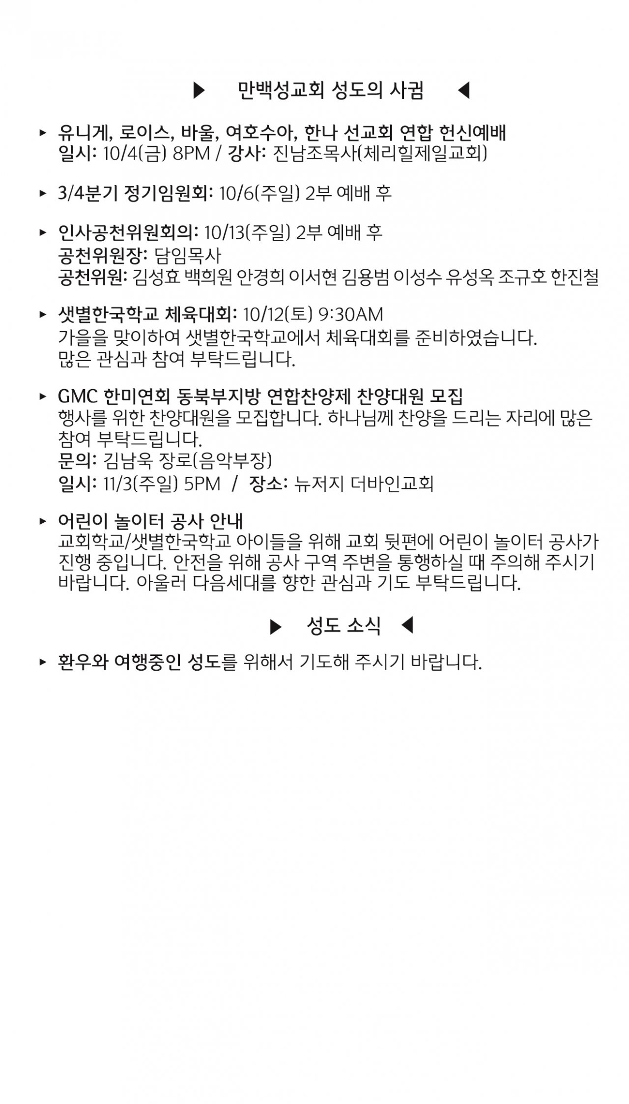 [교회소식] 2024년 9월 29일 뉴욕 만백성교회 성도의 사귐