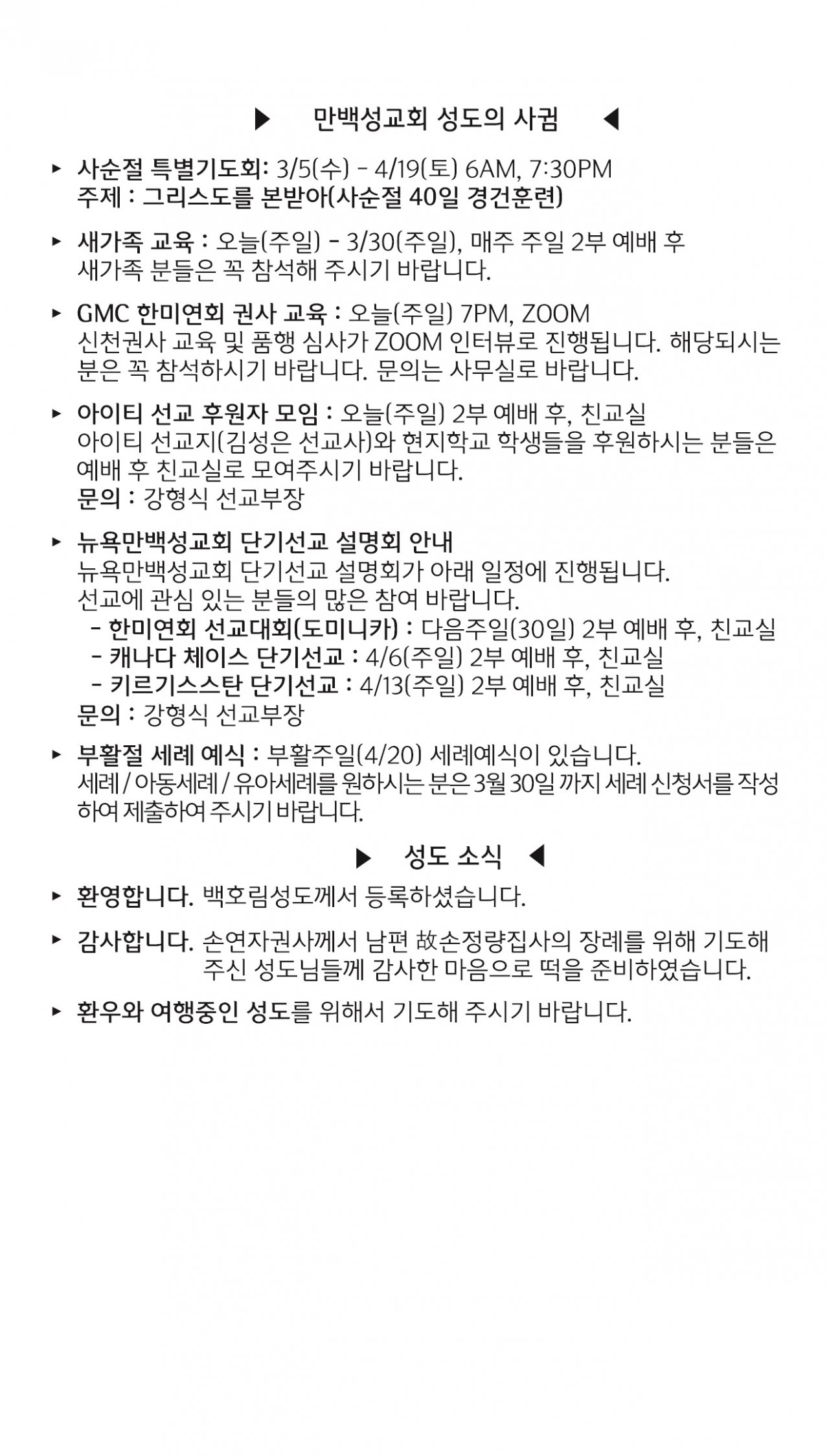 [교회소식] 2025년 3월 23일 뉴욕 만백성교회 성도의 사귐