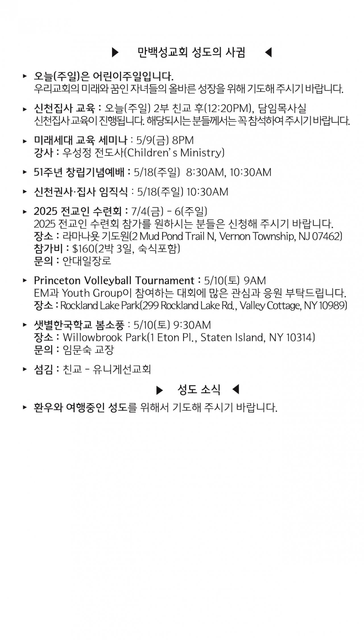 [교회소식] 2025년 5월 4일 뉴욕 만백성교회 성도의 사귐