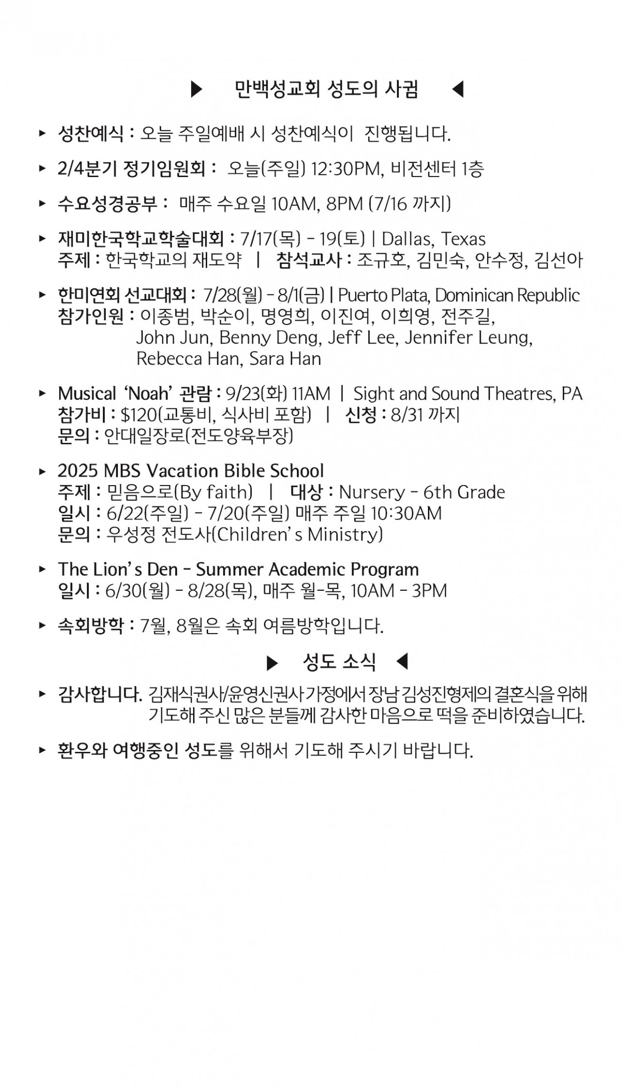 [교회소식] 2025년 7월 13일 뉴욕 만백성교회 성도의 사귐