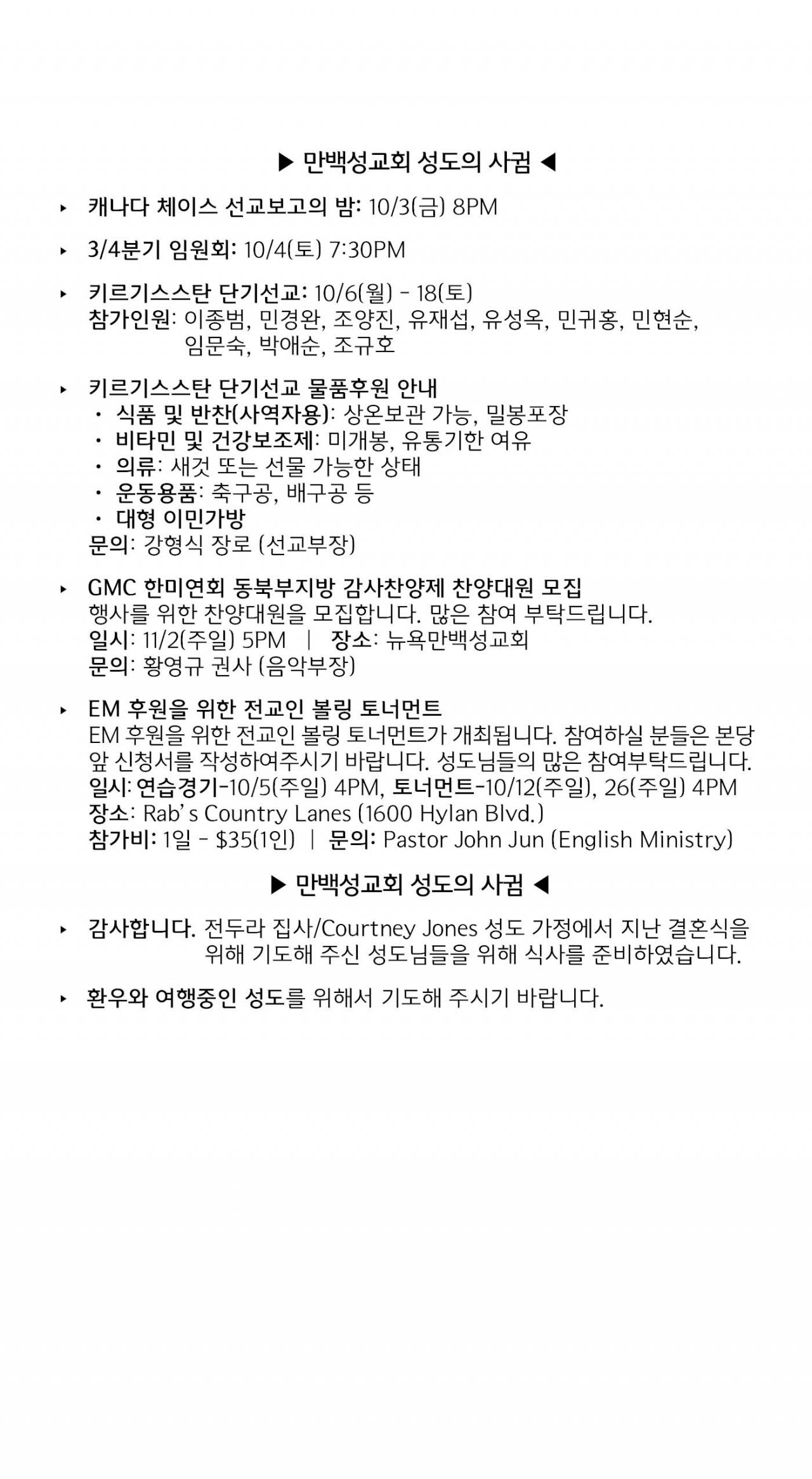 [교회소식] 2025년 9월 28일 뉴욕 만백성교회 성도의 사귐