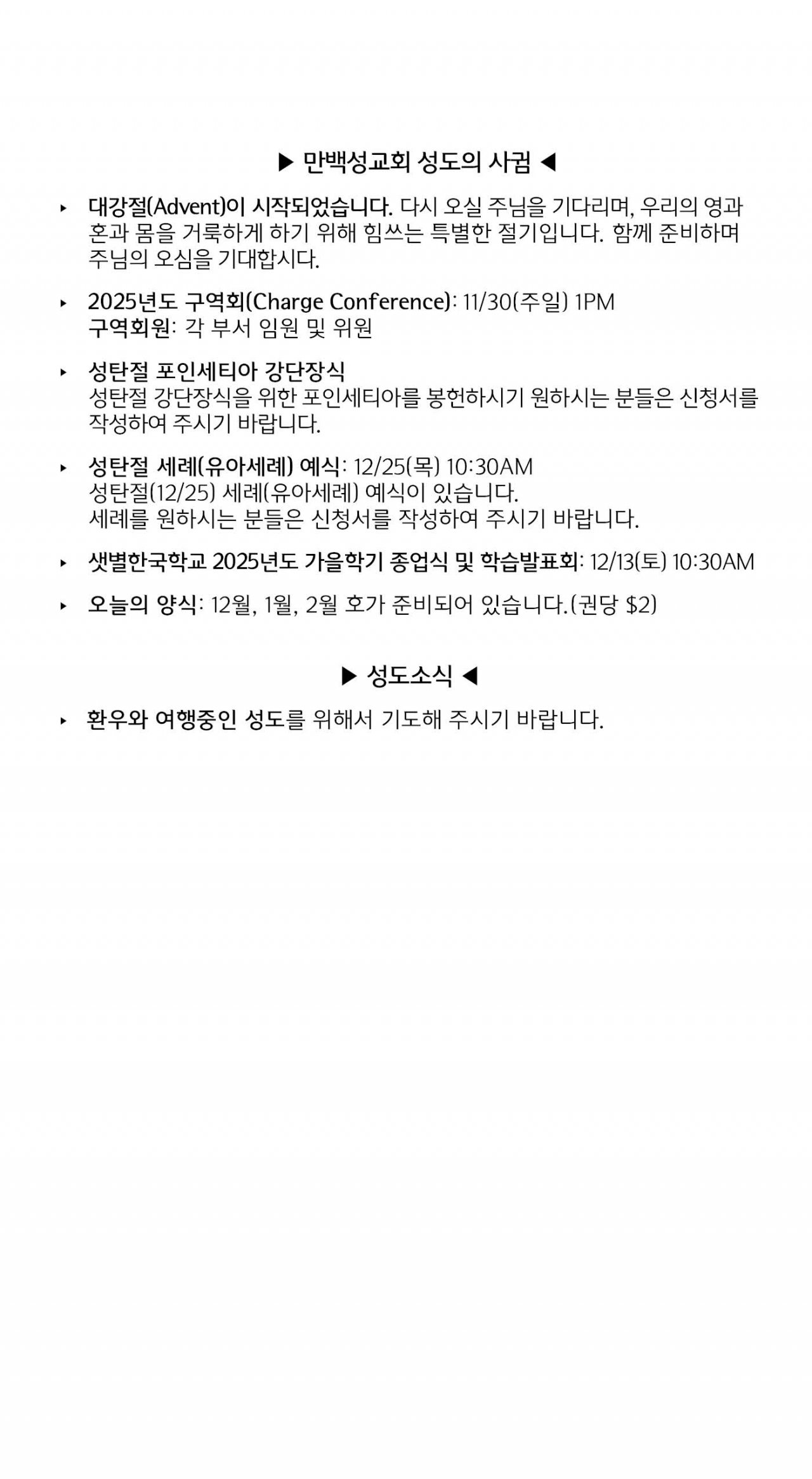 [교회소식] 2025년 11월 30일 뉴욕 만백성교회 성도의 사귐