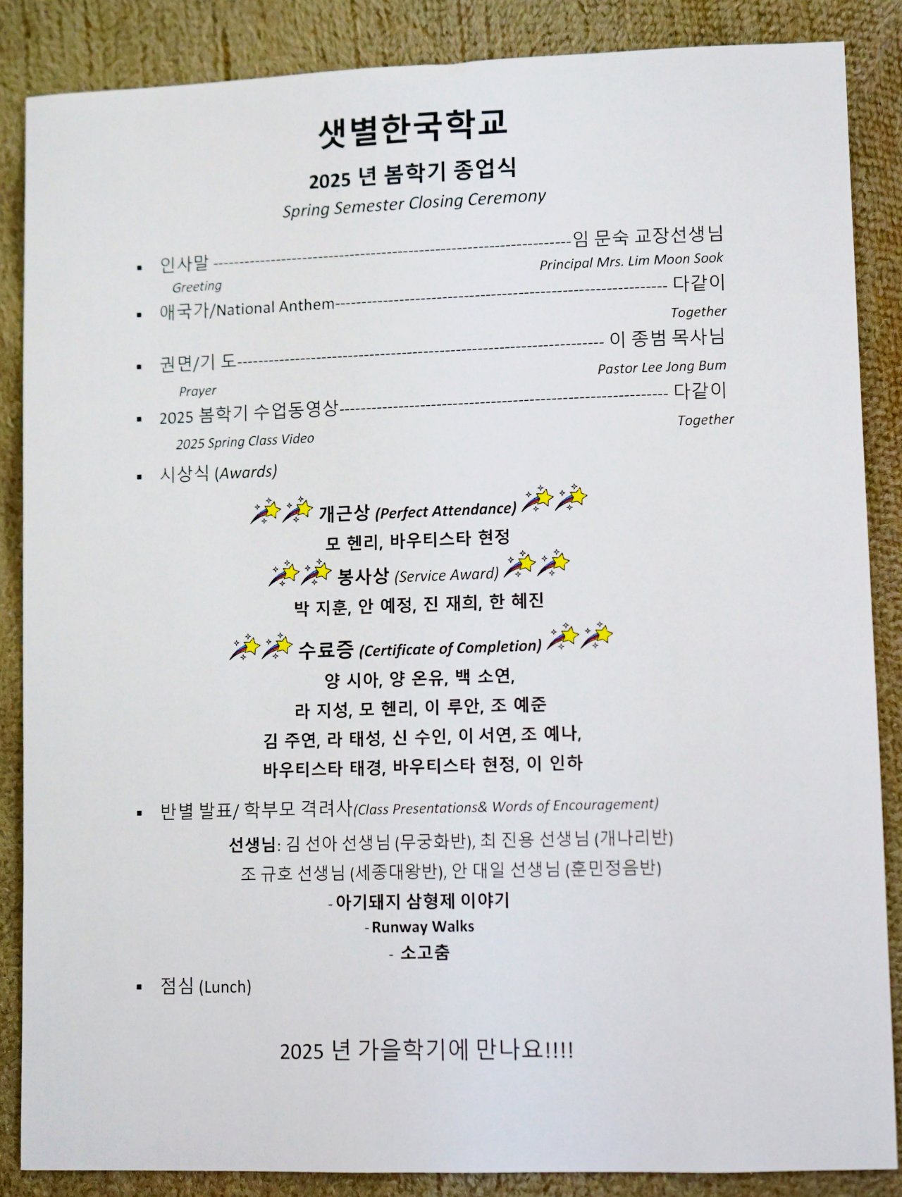 [샛별한국학교] 2025 봄학기 종업식 및 발표회-------1