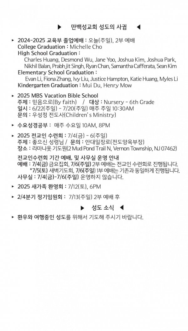 [교회소식] 2025년 6월 29일 뉴욕 만백성교회 성도의 사귐