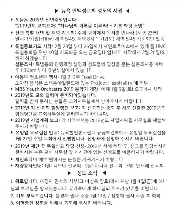 [교회소식] 2019년 1월 6일 뉴욕 만백성교회 성도의 사귐