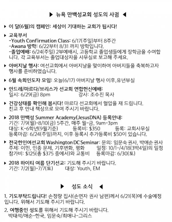 [교회소식] 2018년 6월 17일 만백성 성도의 사귐