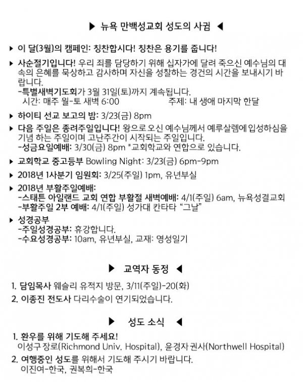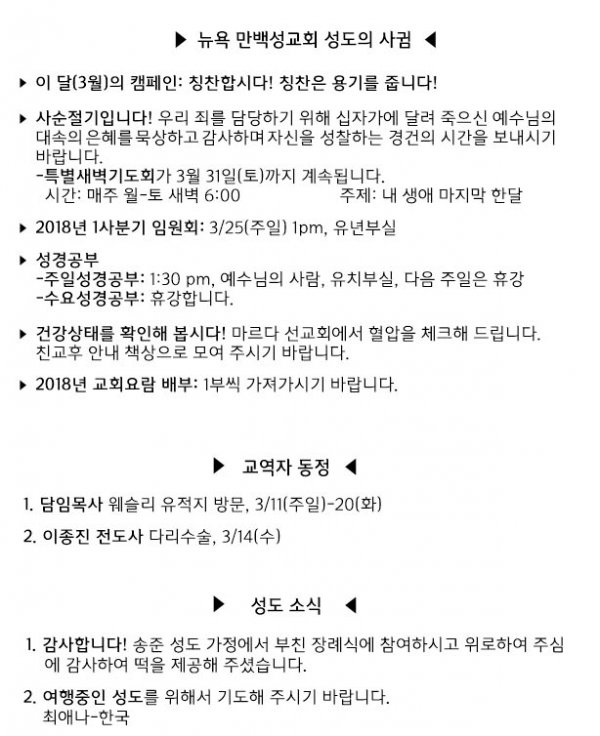 날짜: 2018.03.11 글쓴이 : 관리자 | 교회 소식