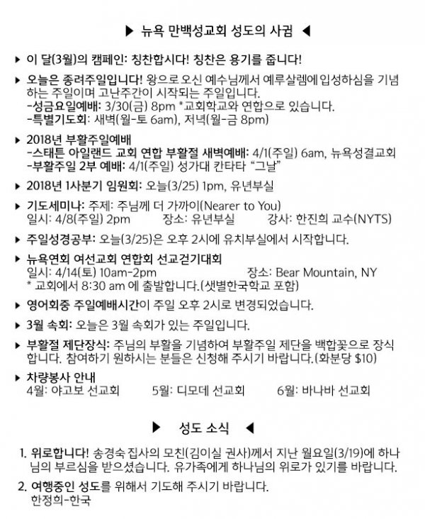 날짜: 2018.03.25 글쓴이 : 관리자 | 교회 소식