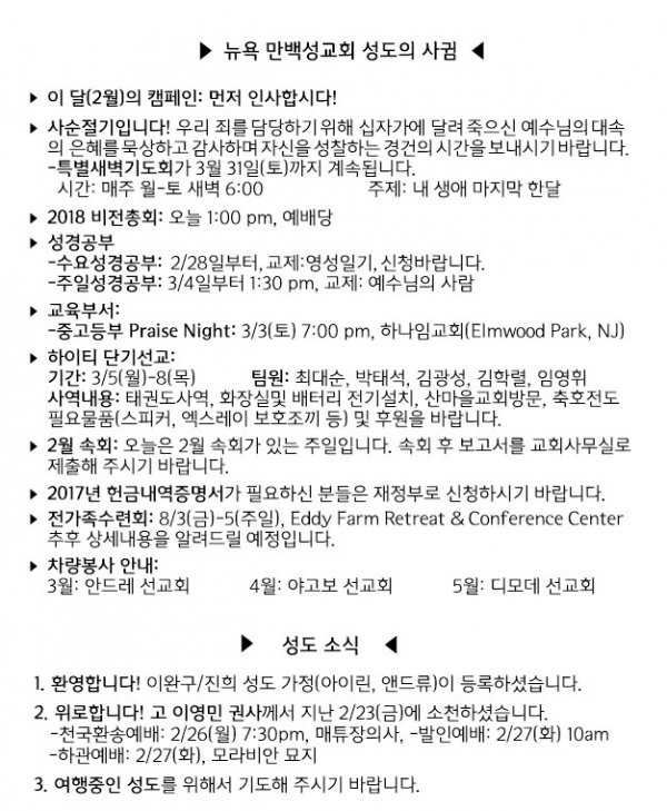 [교회소식] 2018년 2월 25일 만백성 성도의 사귐