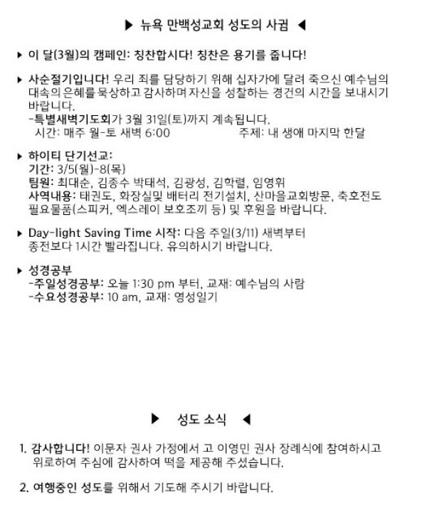 [교회소식] 2018년 3월 4일 만백성 성도의 사귐