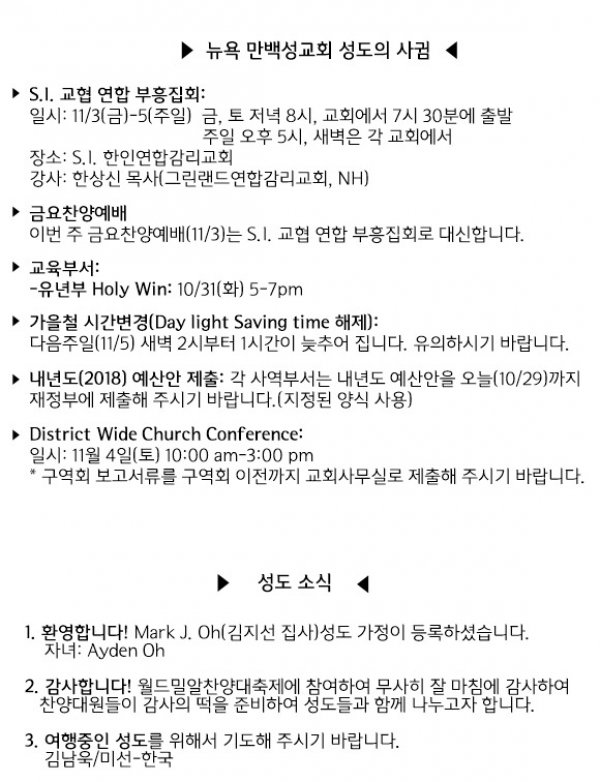 날짜: 2017.11.05 글쓴이 : 관리자 | 교회 소식