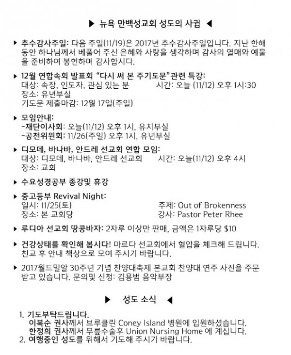 날짜: 2017.11.12 글쓴이 : 관리자 | 교회 소식