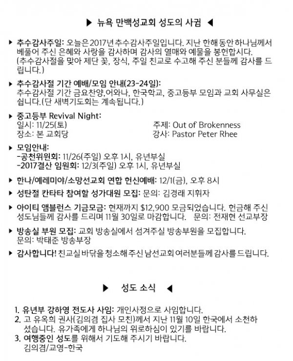 날짜: 2017.11.19 글쓴이 : 관리자 | 교회 소식