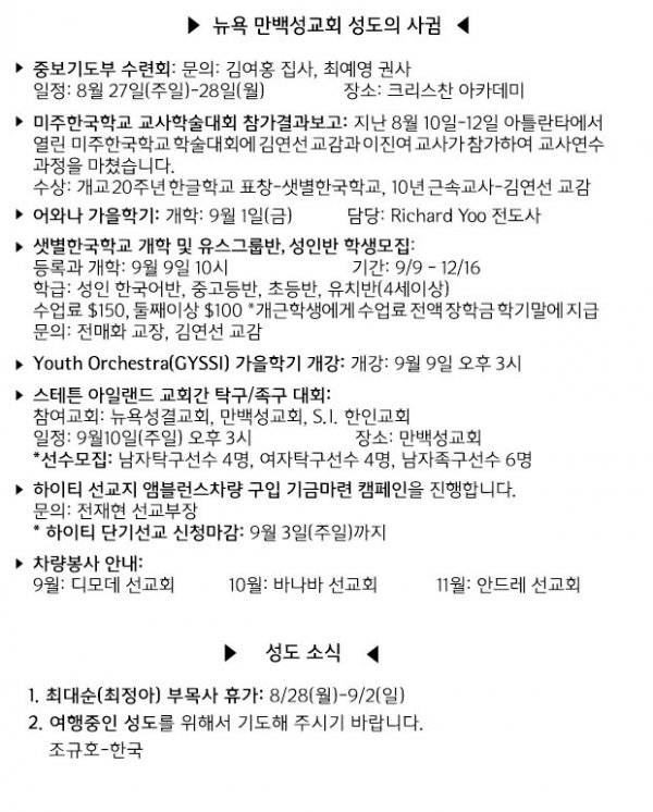 [교회소식] 9월 3일 만백성 성도의 사귐