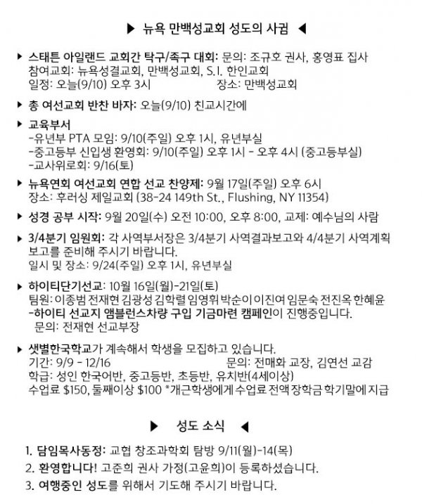 [교회소식] 9월 10일 만백성 성도의 사귐