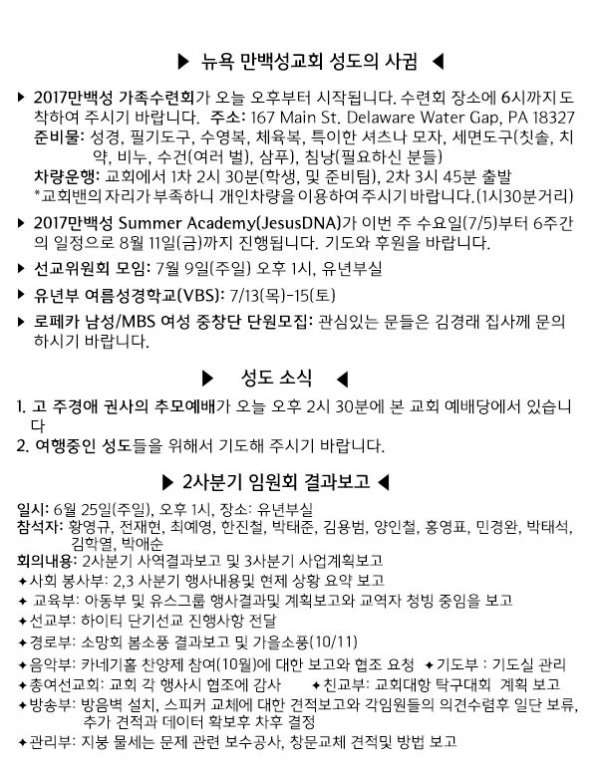 날짜: 2017.07.02 글쓴이 : 관리자 | 교회 소식