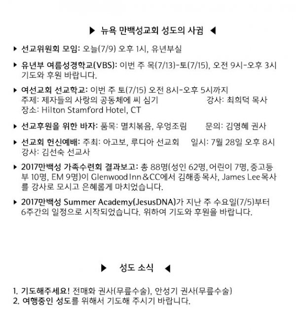 날짜: 2017.07.09 글쓴이 : 관리자 | 교회 소식