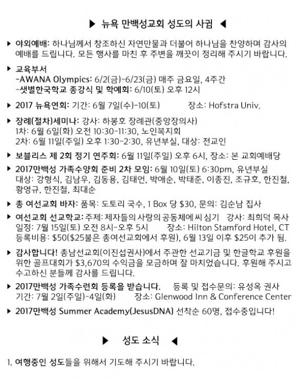 날짜: 2017.06.04 글쓴이 : 관리자 | 교회 소식
