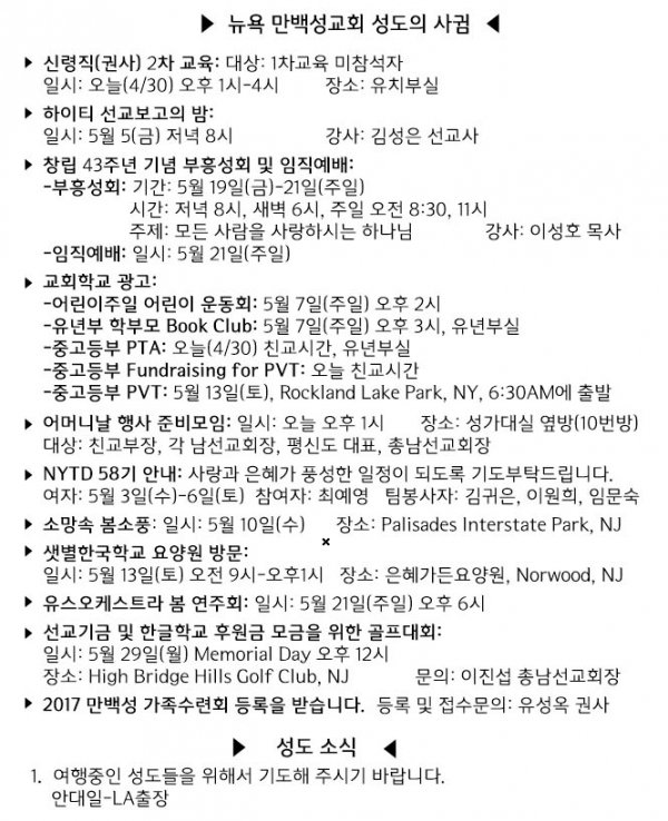 날짜: 2017.04.30 글쓴이 : 관리자 | 교회 소식
