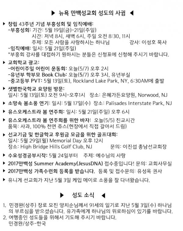날짜: 2017.05.07 글쓴이 : 관리자 | 교회 소식