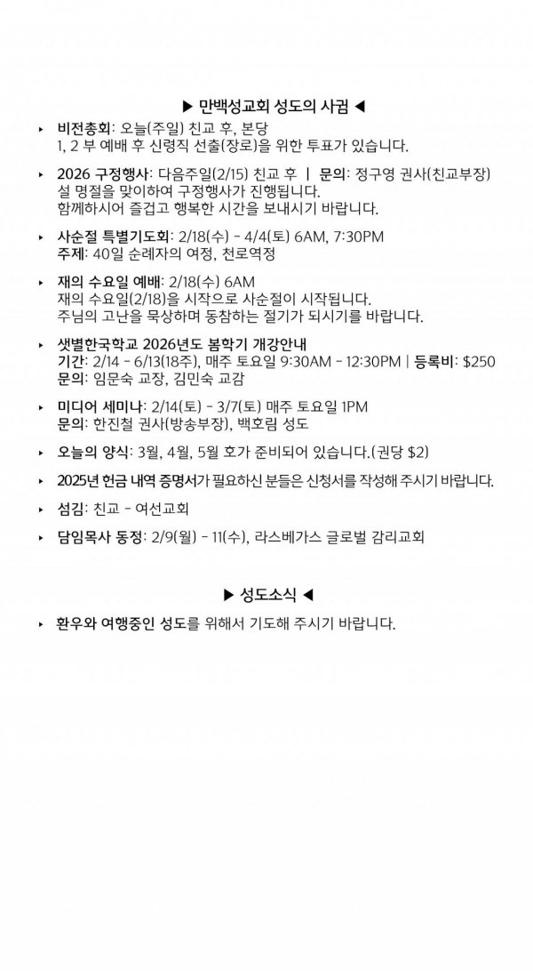 날짜: 2026.02.08 글쓴이 : 관리자 | 교회 소식