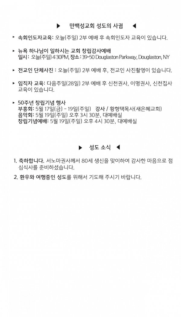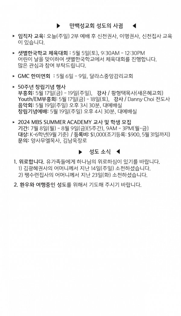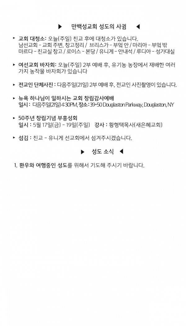 [교회소식] 2024년 4월 28일 뉴욕 만백성교회 성도의 사귐